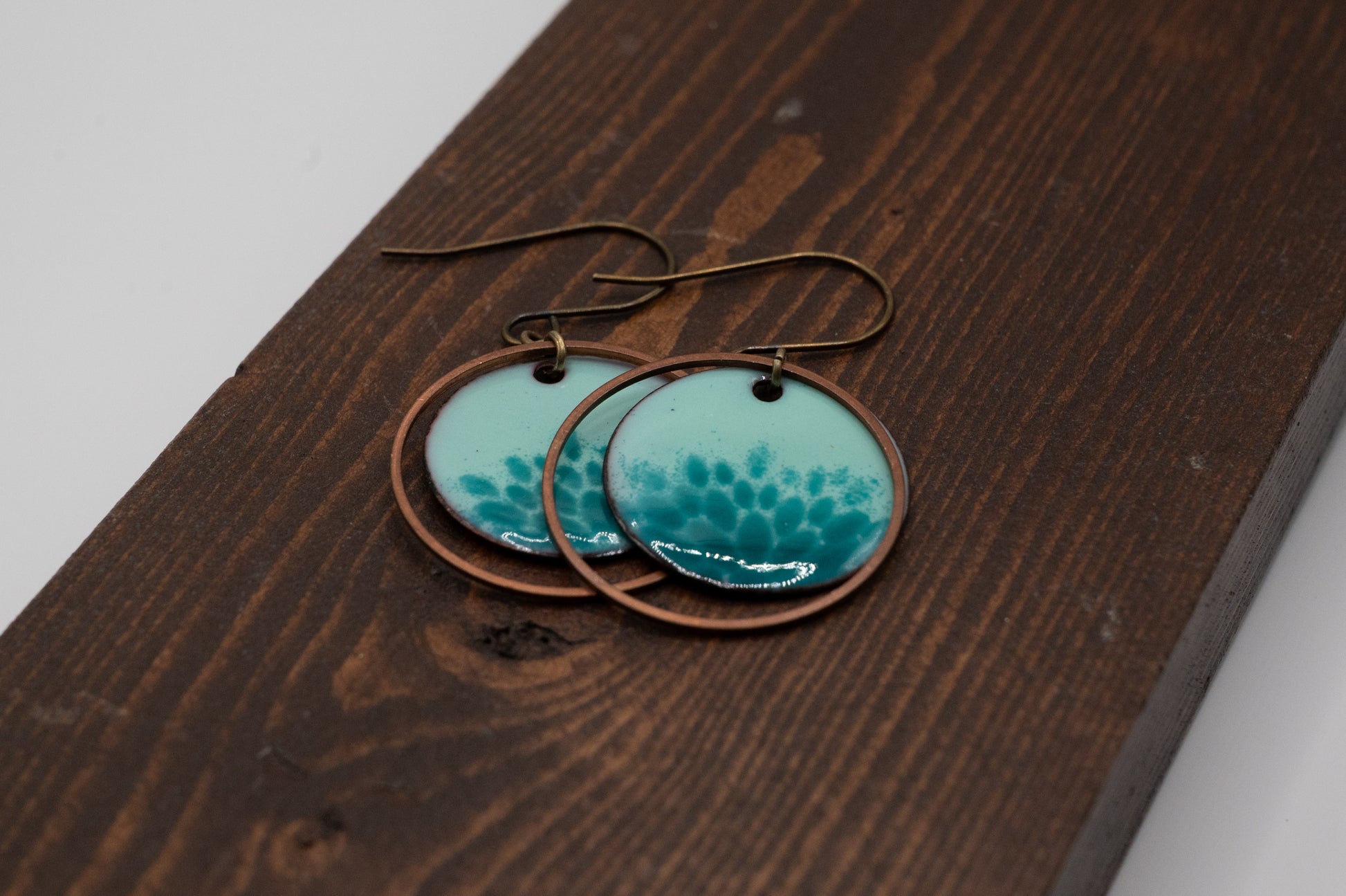 Blue and Teal Floral with Rings Enamel Earrings